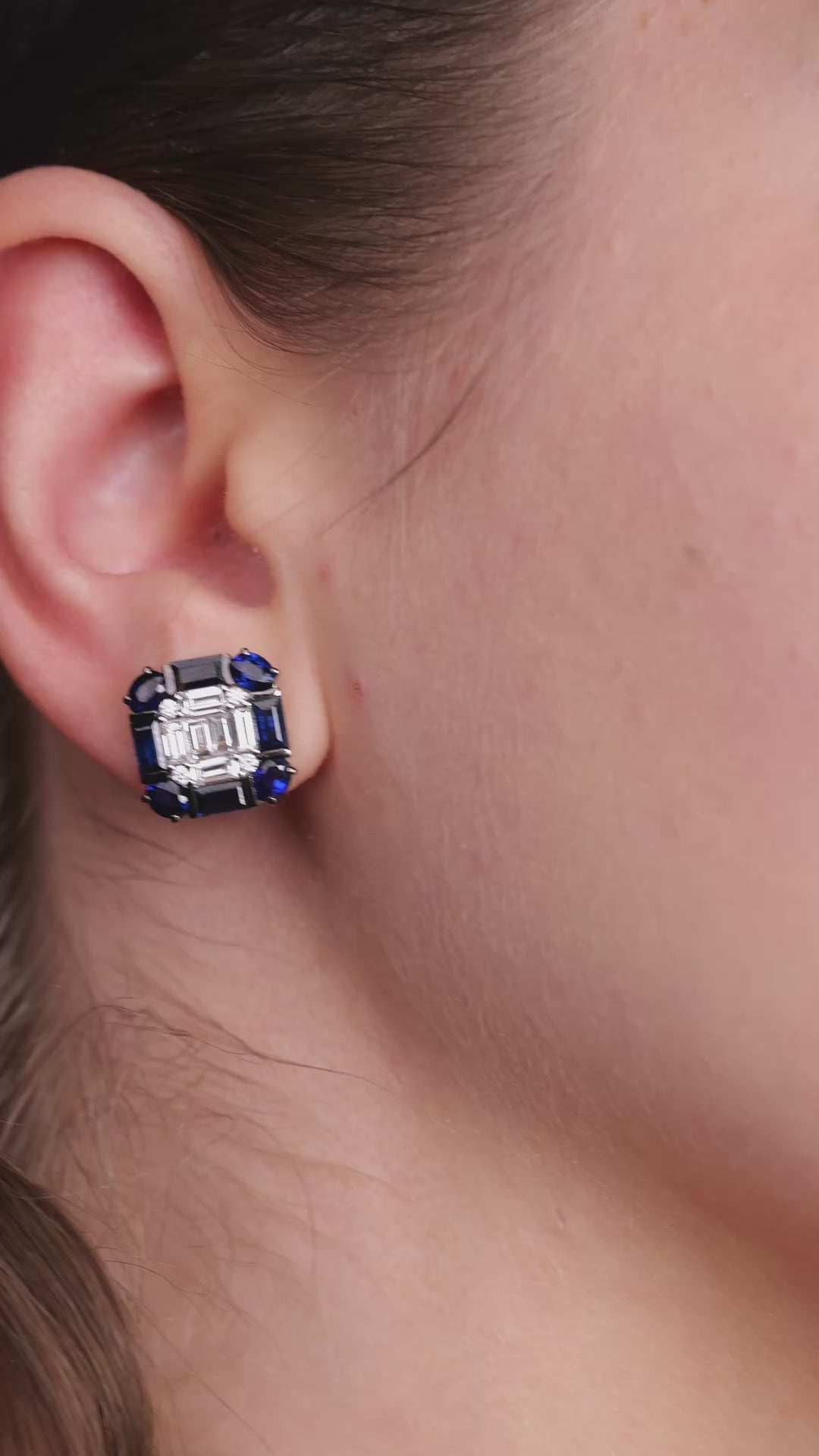Cercei aur 18k cu safire 0.61 ct si diamante
