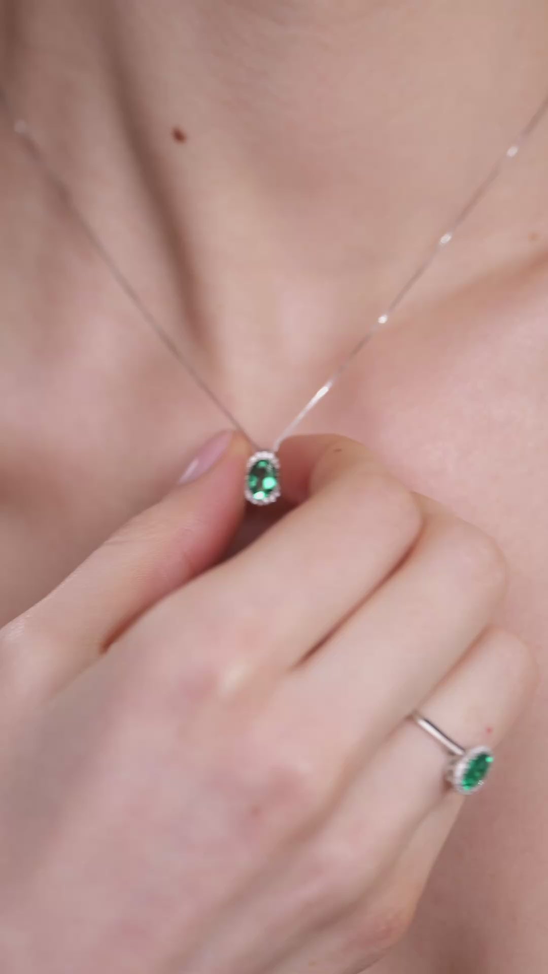 Realizat in aur alb de 18k, 1.80 gr, cu smarald de 0.80ct si diamante de 0.10ct, culoare G si claritate SI.