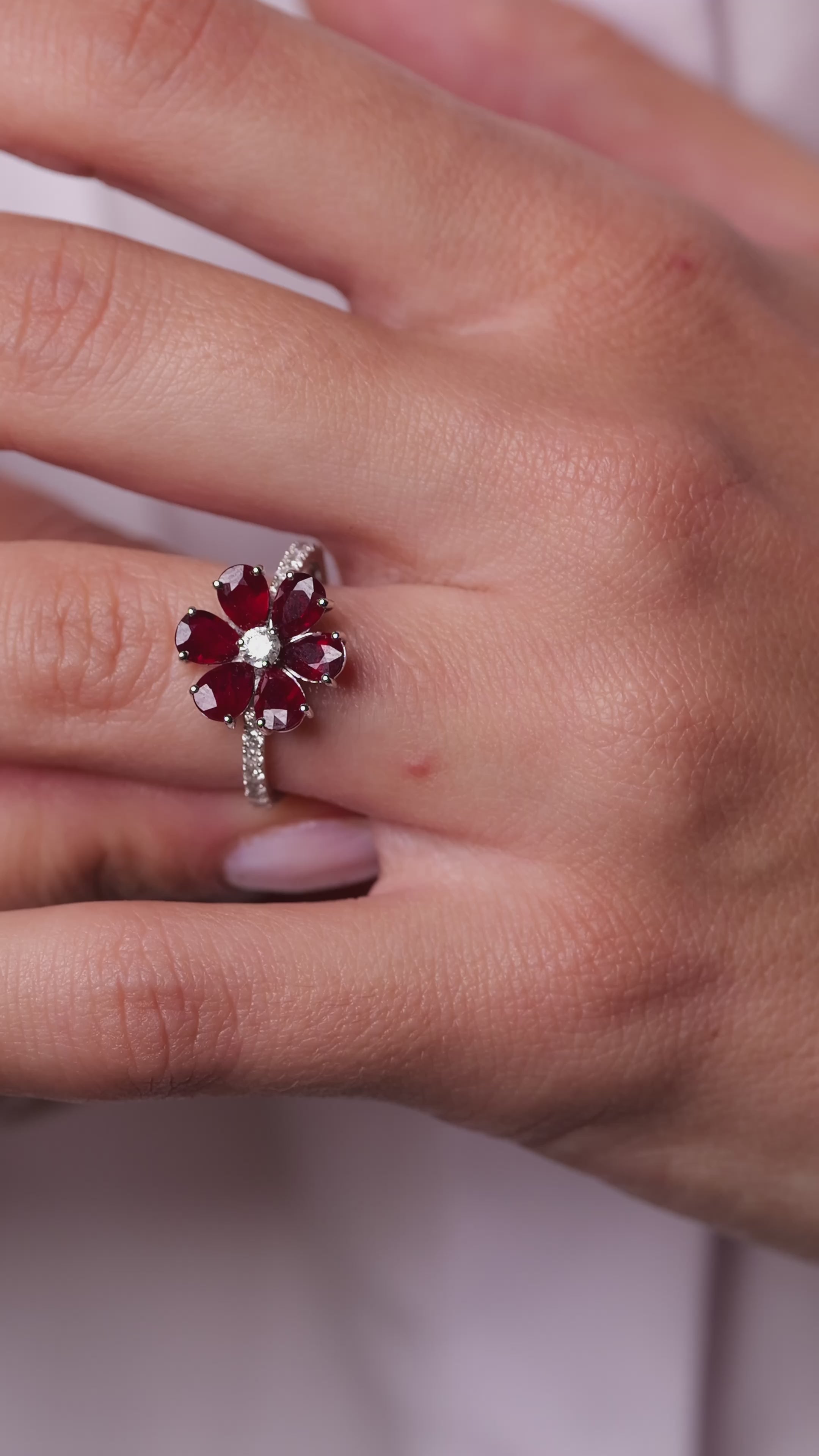 Realizat in aur de 18k, 2.60 gr cu diamante de 0.40 ct, culoare G, claritate SI si rubin de 2.65 ct