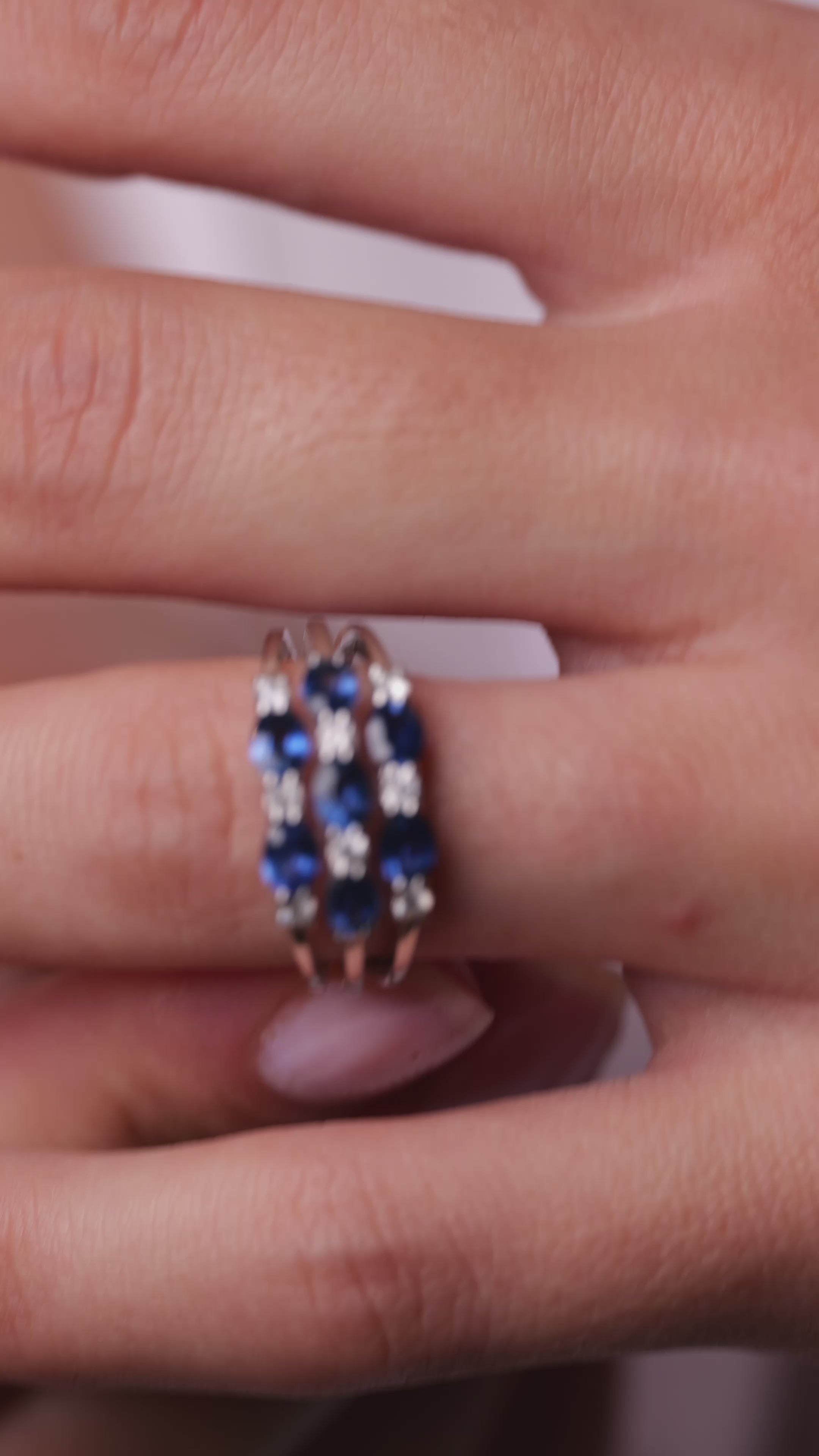 Realizat in aur de 18k, 4.81 gr. cu diamante de 0,28 ct, culoare G, claritate SI si safire de 1.56 ct.